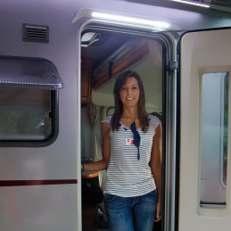 Innowacyjne oświetlenie Fiamma LED do drzwi zewnętrznych z końcówkami w kształcie rynienki i wnęką na środku. Wyposażone w 30 diod LED o strumieniu 547 lm, mocy 7,4 W i napięciu 12 V, zapewnia efektywną zimną biel (690x80x35 mm). Idealne do kamperów – praktyczne i energooszczędne!