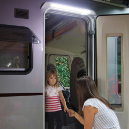 Zewnętrzne oświetlenie LED Fiamma z czujnikiem ruchu idealnie montuje się nad drzwiami kampera lub przyczepy. Aktywuje się tylko w ciemności przy zbliżeniu, emitując 547 lm przez 60 sekund dzięki 30 diodom – zwiększa bezpieczeństwo w słabo oświetlonych miejscach. Energooszczędne (7,4 W, 12 V), kompaktowe (574x36x32 mm).