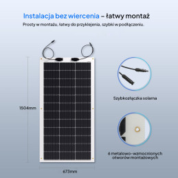 Panel ma cienką budowę, dzięki czemu jest niemal płaski, co pomaga w montażu na dachach pojazdów czy łodziach, gdzie wymagana jest aerodynamika i minimalny opór powietrza.