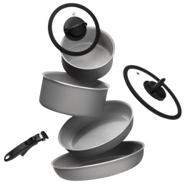 Ten zestaw imponuje kompaktowymi rozmiarami i oferuje optymalną wygodę użytkowania podczas gotowania. Ważne są nie tylko aspekty praktyczne, ale także przyjazność dla środowiska i jakość: Wykonany w 100% z aluminium pochodzącego z recyklingu i wyposażony w innowacyjną, opatentowaną powłokę FINEGRES, która wykorzystuje wyłącznie składniki mineralne, seria charakteryzuje się trwałością, szybkim nagrzewaniem i doskonałymi właściwościami nieprzywierającymi. Nadaje się do wszystkich rodzajów płyt grzewczych.