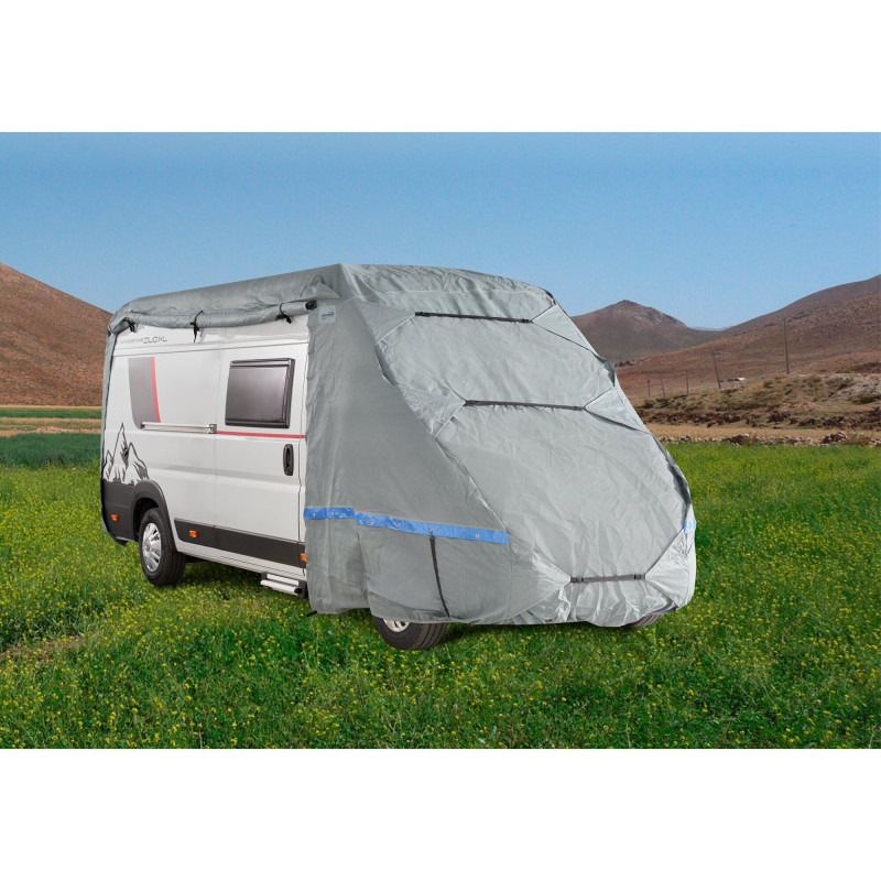 Pokrowiec ochronny Brunner na kampera z oddychającego materiału chroni przed deszczem, brudem, śniegiem i UV. Duże boczne otwarcie z dwoma zamkami błyskawicznymi umożliwia szybki dostęp do drzwi i wnętrza. Wydłuża żywotność pojazdu o wiele lat. W zestawie torba do przechowywania.