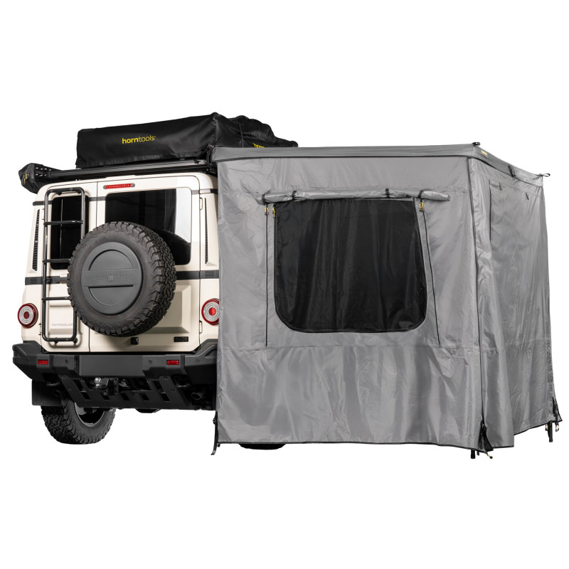 Przekształć swoją markizę Horizon Straight w wszechstronną przestrzeń zewnętrzną dzięki pasującym ścianom bocznym. Zapewniają one niezawodną ochronę przed wiatrem, pogodą i owadami, można je szybko zamontować za pomocą zamka błyskawicznego, a idealnie współgrają z regulowanym oświetleniem LED markizy. Odporne na warunki atmosferyczne ściany z oknami i siatkami przeciw owadom są elastyczne w użyciu, np. jako jednostronna osłona przeciwwiatrowa. W zestawie torba transportowa i akcesoria. Możliwość użytkowania do wysokości 200 cm.