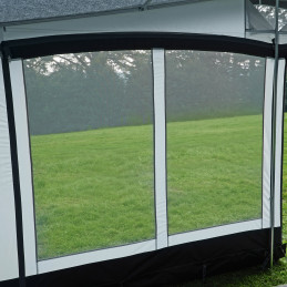 Przednia ściana z siatką Kari od Westfield z 100% poliestru PES zapewnia skuteczną ochronę przed owadami, umożliwiając swobodny przepływ powietrza i komfortową temperaturę wewnątrz. Z wodoodpornością 5000 mm i filtrem UPF 50 waży tylko 2,05 kg. Idealne akcesorium do markiz kempingowych.
