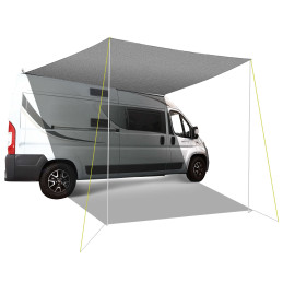 Wygodna markiza płócienna wykonana z odpornego na UV materiału plastikowego. Obszyta na całym obwodzie, z oczkami. Łatwa do zamontowania na szynie prowadzącej przyczep kempingowych, kamperów lub vanów. Kompatybilna z markizami Fiamma i Thule. W zestawie kołki i liny napinające. Wysokość montażu: 210 cm;