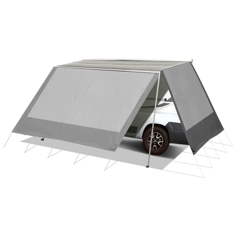 Lekki i elastyczny daszek przeciwsłoneczny Breeze od WIGO (9,7 kg netto) zapewnia doskonałą ochronę przed słońcem i wiatrem. Wykonany ręcznie z najwyższą jakością, montowany bezpośrednio do listwy kedrowej, z opcją dodania przedniej ścianki na zamek błyskawiczny. Idealny dla kamperowców szukających wszechstronnego cienia.