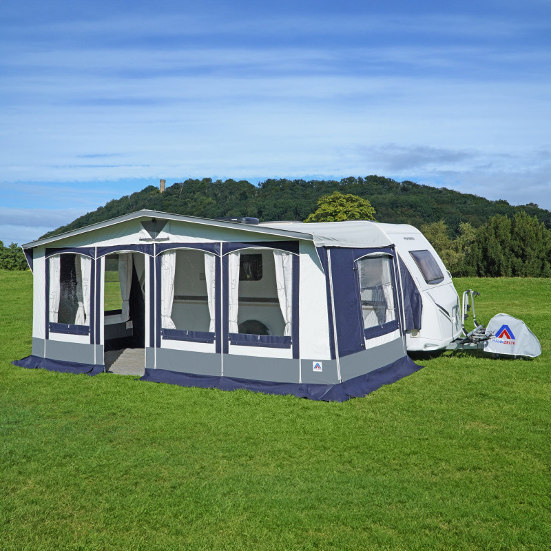 Całoroczna markiza Fehmarn jest solidna, odporna na warunki atmosferyczne i trwała. Wewnętrzne kieszenie oraz zewnętrzne paski przeciwsztormowe pod oknami zapewniają pewne trzymanie, a narożnik Vario pozwala optymalnie dostosować markizę do Twojej przyczepy. Podwójna osłona przeciwwiatrowa z kedrą zapewnia elastyczne opcje napinania. Zakryte zamki błyskawiczne i zamykane klapy okienne chronią przed wiatrem i pogodą. Dodatkowo markiza posiada specjalną kedrę do mocowania bezśrubowych uchwytów (nie dołączone) oraz 5 klipsów przeciwsztormowych dla dodatkowej stabilności (zestaw pasków przeciwsztormowych dostępny osobno).