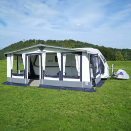 Wolnostojący namiot całoroczny Frankana Freiko Garmisch idealnie nadaje się do kamperów zimą, oferując 3,24 m² przestrzeni na sprzęt narciarski lub rowery. Wykonany z trwałego 100% PVC, z regulowaną wysokością montażu 270-300 cm i stalowym stelażem ø25 mm. Kompaktowy (waga netto 30 kg) i wszechstronny – zapewni ochronę przez cały rok!