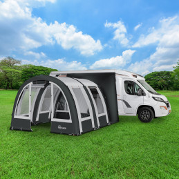 Traveller Air Modular dostosowuje się do każdej sytuacji i oferuje maksymalną elastyczność podczas kempingu. Modułowa konstrukcja pozwala na indywidualne powiększanie lub zmniejszanie rozmiaru markizy lub ustawianie jej tylko częściowo. Dzięki wolnostojącej konstrukcji pozostaje stabilna nawet po Twoim odejściu. Przemyślany system rur powietrznych zapewnia szybki i nieskomplikowany montaż. Z odpornym na warunki atmosferyczne materiałem o imponującej wodoodporności 10 000 mm oraz wszechstronnymi opcjami otwierania, ta markiza do vana tworzy przyjemne środowisko w każdą pogodę.