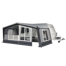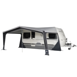 Namiot częściowy StarCamp Quick'n Easy Luxus Air to wolnostojąca markiza z systemem Airtube, idealna do busów i kamperów. Kompaktowy rozmiar po spakowaniu (76 cm) i łatwy montaż na wysokości 210-270 cm zapewniają wygodę i ochronę. Zwijane ściany z oknami i moskitierami gwarantują komfort – doskonały stosunek ceny do jakości!