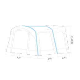 Funkcjonalny łącznik łączy wolnostojącą markizę do vana Orion z pojazdem. Łącznik jest mocowany do markizy za pomocą zamka błyskawicznego, a do kampera za pomocą kedry.