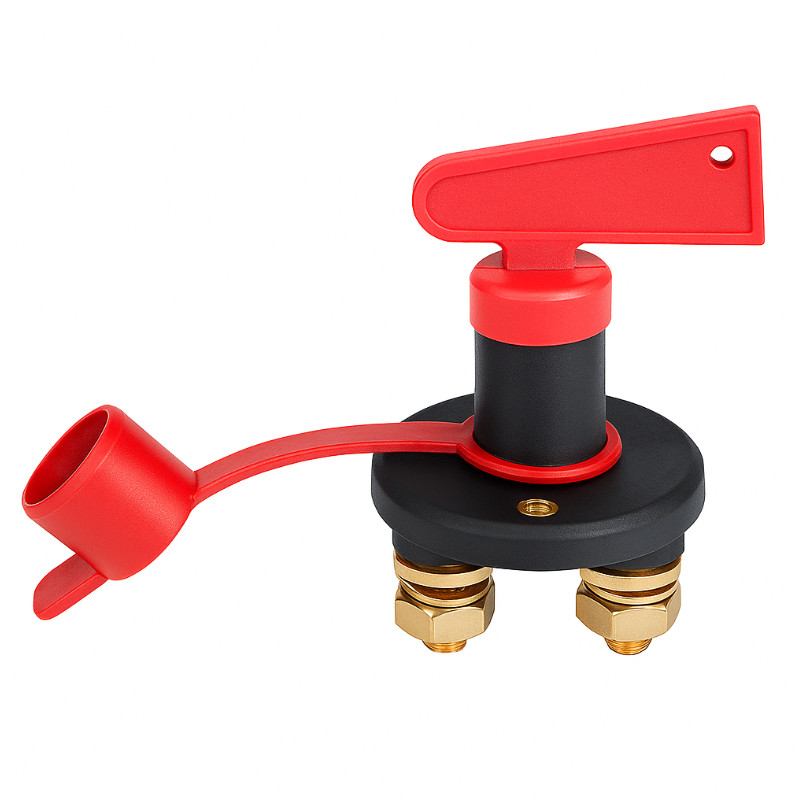 Rozłącznik akumulatora o wytrzymałej konstrukcji z tworzywa ABS i metalu zapewnia bezpieczne odłączanie zasilania w systemach DC 12–48 V. Idealny do samochodów, łodzi, kamperów, przyczep, ATV i banków akumulatorów. Obsługuje chwilowe obciążenie do 500 A, posiada cynowane bolce miedziane M10 o długości 22 mm, odporność na wodę IP66 oraz prosty montaż....