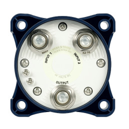 Wybór akumulatora 1 (bank 2 odcięty), akumulatora 2 (bank 1 odcięty) lub całkowite odcięcie obu (OFF) dla pełnej kontroli nad zasilaniem.