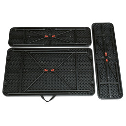 Podróżuj lżej dzięki stołowi i siedziskom w jednym! Składany zestaw piknikowy Pemberton to praktyczny wybór na letnie wakacje z rodziną i przyjaciółmi. Dwie ławki można przymocować do ramy stołu, co ułatwia transport. Stół wykonany jest z trwałego, wodoodpornego plastiku i może pozostawać na zewnątrz przez cały wyjazd, gotowy na każdy posiłek. Wystarczy rozłożyć, aby go użyć. Zestaw obejmuje stół o wymiarach 120 x 61 x 70 cm oraz dwie ławki o wymiarach 102 x 28 x 44 cm. Maksymalne obciążenie: 80 kg (stół) i 100 kg (na ławkę).