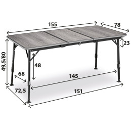 Składany stół kempingowy EuroTrail Santé z aluminium waży zaledwie 2,75 kg i po złożeniu ma kompaktowe wymiary, idealne na wakacje. Regulowane nogi (25-58 cm) i nośność do 20 kg zapewniają wygodę, a odporność na ciepło i wodę gwarantuje trwałość. Lekki i łatwy w montażu – must-have dla każdego kempingowca!