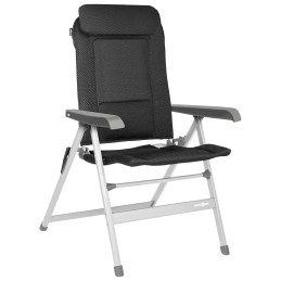 Krzesło kempingowe Kendal Comfort zapewnia wygodę dzięki szerokiemu siedzisku, wysokiemu oparciu z poduszką i regulowanemu zagłówkowi. Wytrzymała aluminiowa rama udźwignie do 140 kg, a oparcie ma 6 pozycji regulacji.