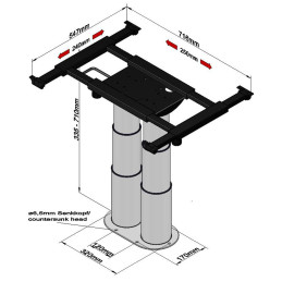 Wolnostojąca rama podnosząca do przyczep kempingowych. Regulowana wysokość od 32 cm do 69,5 cm. Blat nie jest dołączony do dostawy.