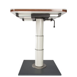 Stoły podnośnikowe jednosłupowe Kesseböhmer Primero Comfort HPK idealnie pasują do przyczep kempingowych i kamperów. Zoptymalizowana technologia podnoszenia z sprężyną gazową zapewnia maksymalną stabilność i płynną regulację wysokości od 30 do 60 cm.