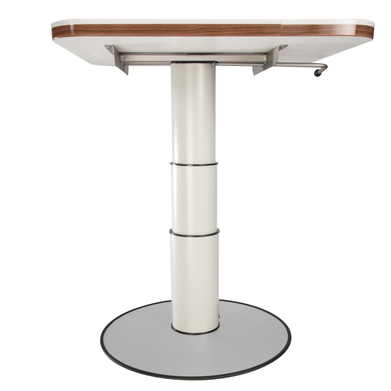 Trzyczęściowa obrotowa noga stołu z wbudowanym mechanizmem obrotowym. Centralny podział umożliwia przekształcenie w łóżko, górny podział pozwala na oszczędzające miejsce przechowywanie. Wysokość 70 cm.