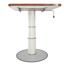 Stoły podnośnikowe jednosłupowe Kesseböhmer Primero Comfort HPK idealnie pasują do przyczep kempingowych i kamperów. Zoptymalizowana technologia podnoszenia z sprężyną gazową zapewnia maksymalną stabilność i płynną regulację wysokości od 30 do 60 cm.