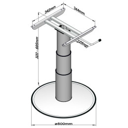 Rama stołu jednosłupowa Ilse z mechanizmem obrotu 360° i regulacją wysokości do 71,7 cm idealnie sprawdza się w kamperach. Umożliwia płynne przesuwanie w pionie (23 cm) i poziomie (27 cm) z centralnym blokowaniem, zapewniając komfort i funkcjonalność. Stalowa konstrukcja w kolorze jasnoszarym waży tylko 17,4 kg – gotowa do montażu bez blatu.
