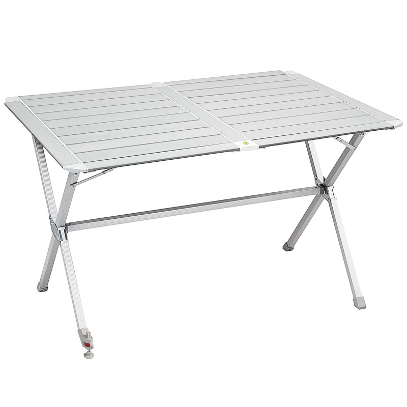 Stół kempingowy Brunner Elùtop ComPack (szer. 120 cm) z ultralekkiego aluminium, składanym blatem i regulacją wysokości 42-70 cm. Nośność 50 kg, waga netto 7,5 kg. Solidna konstrukcja z rur alu na kemping i piknik.