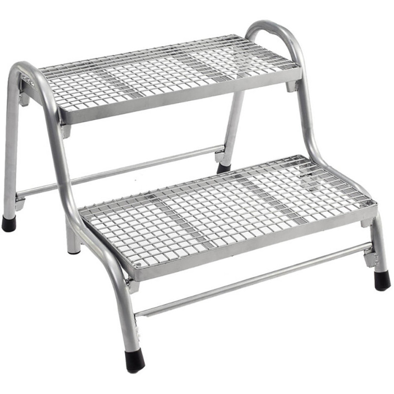 Lekki i składany aluminiowy podwójny stopień Heusser o nośności do 150 kg idealnie sprawdzi się w kamperze. Antypoślizgowe stopnie (36 x 23 cm) zapewniają bezpieczeństwo i wygodę wejścia. Waży zaledwie 3,9 kg, a po złożeniu zajmuje minimalnie mało miejsca.