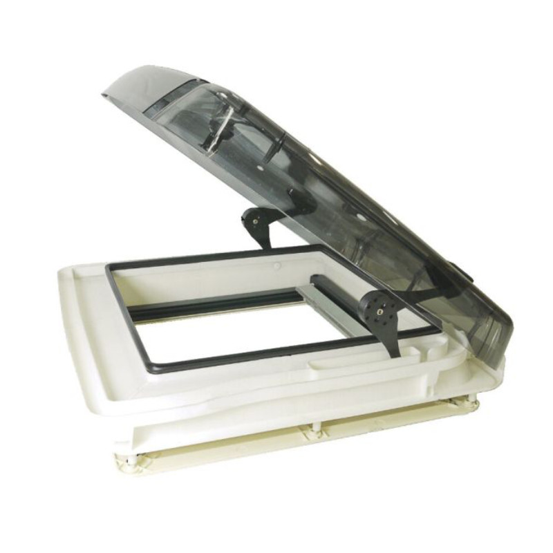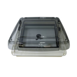 Przyciemniane szkło, z uchwytami i systemem zamykania. Kolor odnosi się do uchwytów okna dachowego. Produkt marki MPK. Waga netto: 1 kg. Numer katalogowy: 206271_01. Element do świetlika dachowego w kamperze lub przyczepie. Zapewnia właściwą wentylację i doświetlenie wnętrza pojazdu.