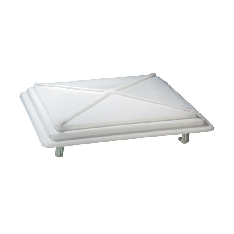 Świetlik dachowy MPK Model 32 bez siatki przeciw owadom z matowego szkła i teleskopowymi ramionami umożliwia otwarcie z 4 stron oraz stałą wentylację. Pasuje do dachów o grubości 24-46 mm, wymiary wycięcia 320x360 mm, waga netto 1,4 kg. Idealny do kamperów – zapewni naturalne światło i przewiew bez insektów.