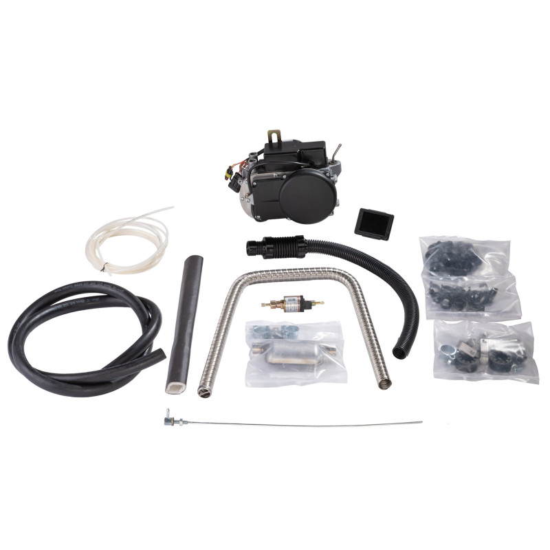Zakres dostawy: palnik 5 kW z wężem ssącym, wydechem i uchwytem; pompa diesla z uchwytem, złączami i rurą; panel sterowania/panel dotykowy