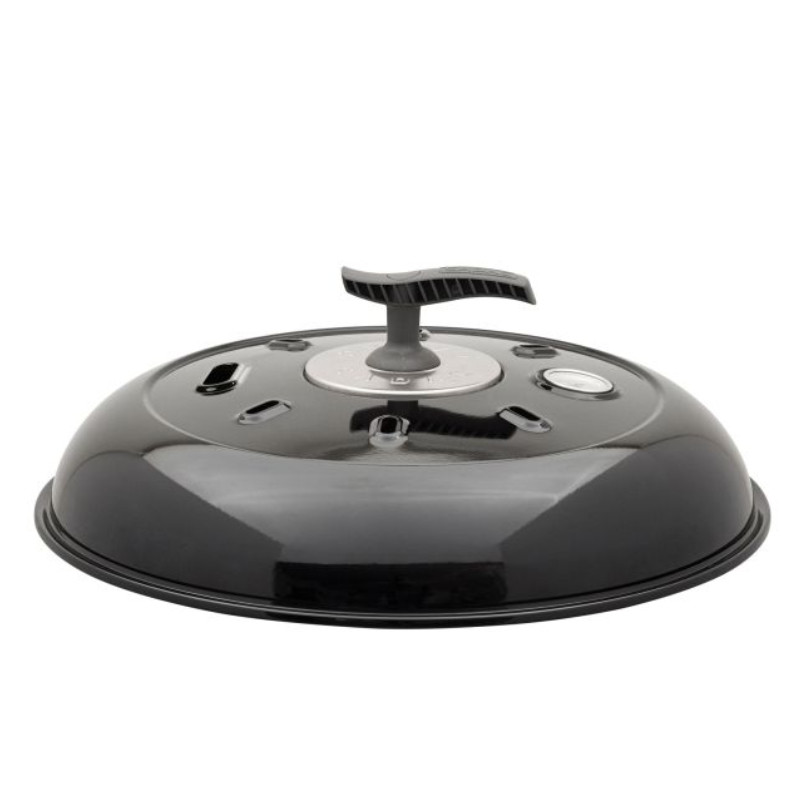 Emaliowana pokrywa CADAC do grilla Carri Chef 50 (ø 47 cm) z wbudowanym termometrem idealnie uzupełnia serię i chroni przed wiatrem, gdy jest zaczepiona z boku. Wygodny uchwyt pozostaje chłodny, zapewniając bezpieczeństwo i komfort podczas grillowania. Lekka (1,6 kg netto) i trwała z stali emaliowanej – must-have dla kamperów!