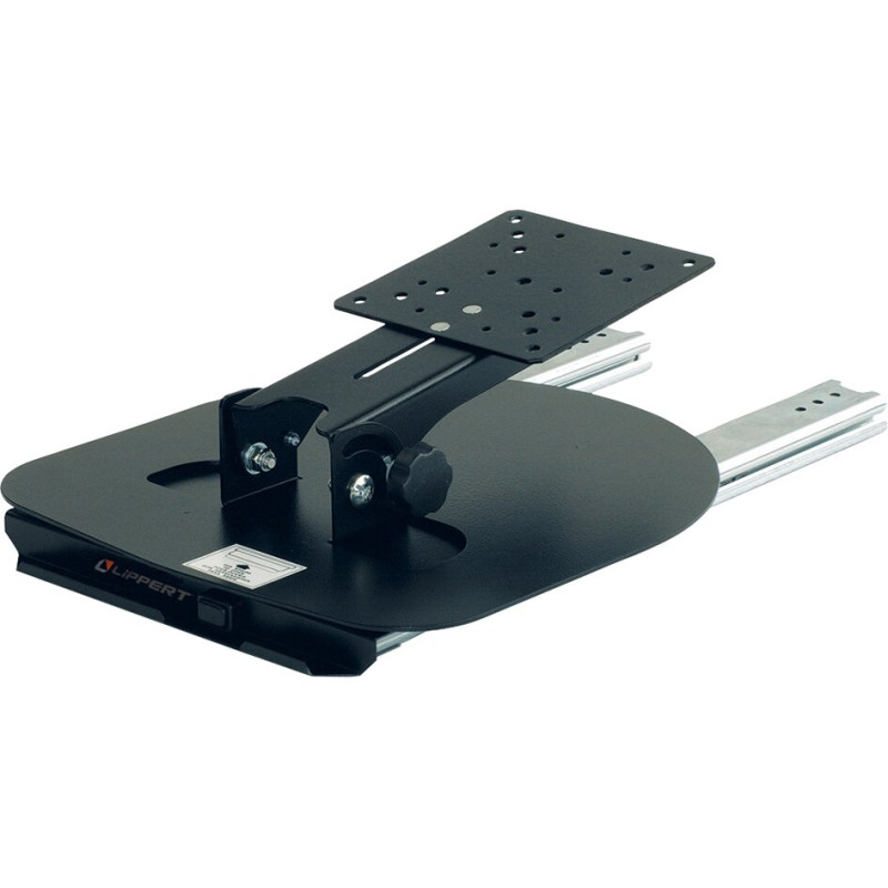 Lekki i wytrzymały, aluminiowy uchwyt do telewizora z blokadą na czas jazdy, która zabezpiecza ekran przed uszkodzeniem i pozwala zostawić go zamontowanego w trakcie podróży; kompatybilny ze standardem VESA 75 i 100.