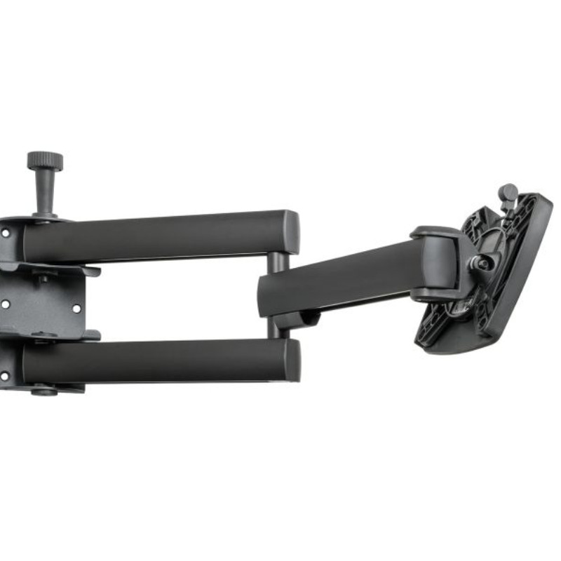 Podwójny uchwyt przegubowy z mechanizmem blokującym i podstawą szybkiego zwalniania. Odpowiedni dla wszystkich urządzeń TV zgodnych z normą VESA 75 i 100.