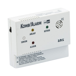 System alarmu gazowego AMS Kombi Alarm (12 V) wcześnie wykrywa gazy narkotyczne i łatwopalne (butan, propan, metan), auto-dostosowując czułość przy niskim zużyciu (90 mA). Idealny do kamperów, przyczep i kabin ciężarówek; obsługuje 2 czujniki i wyjście przekaźnikowe. Kompaktowy i niezawodny!