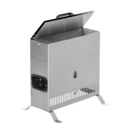 Ecomat 2000 Select to przenośny ogrzewacz z ceramicznym PTC, dający ciepło konwekcyjne bez wysuszania powietrza w przyczepach, łodziach czy domach. Regulacja mocy 450/750/1800 W i termostat umożliwiają podłączenie do słabych linii. Kompaktowy aluminiowy model waży 2,32 kg.