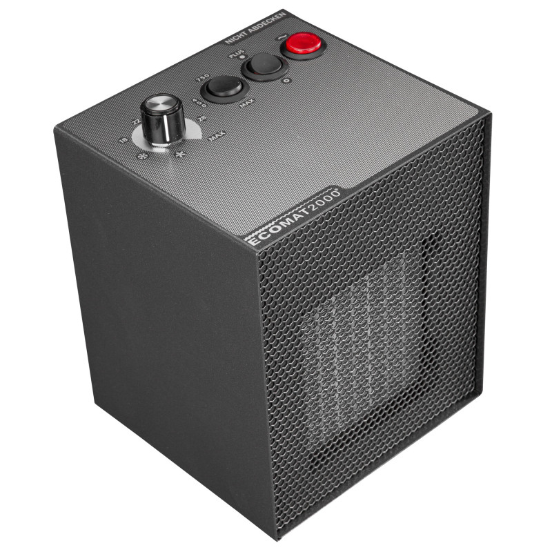 Ecomat 2000 Classic to przenośny ogrzewacz 1800 W z ceramicznym PTC, dający ciepło konwekcyjne bez wysuszania powietrza. Regulacja 3 poziomów mocy (450/750/1800 W) i termostat nadają się do przyczep, łodzi czy domów. Kompaktowy, waży 2,2 kg.