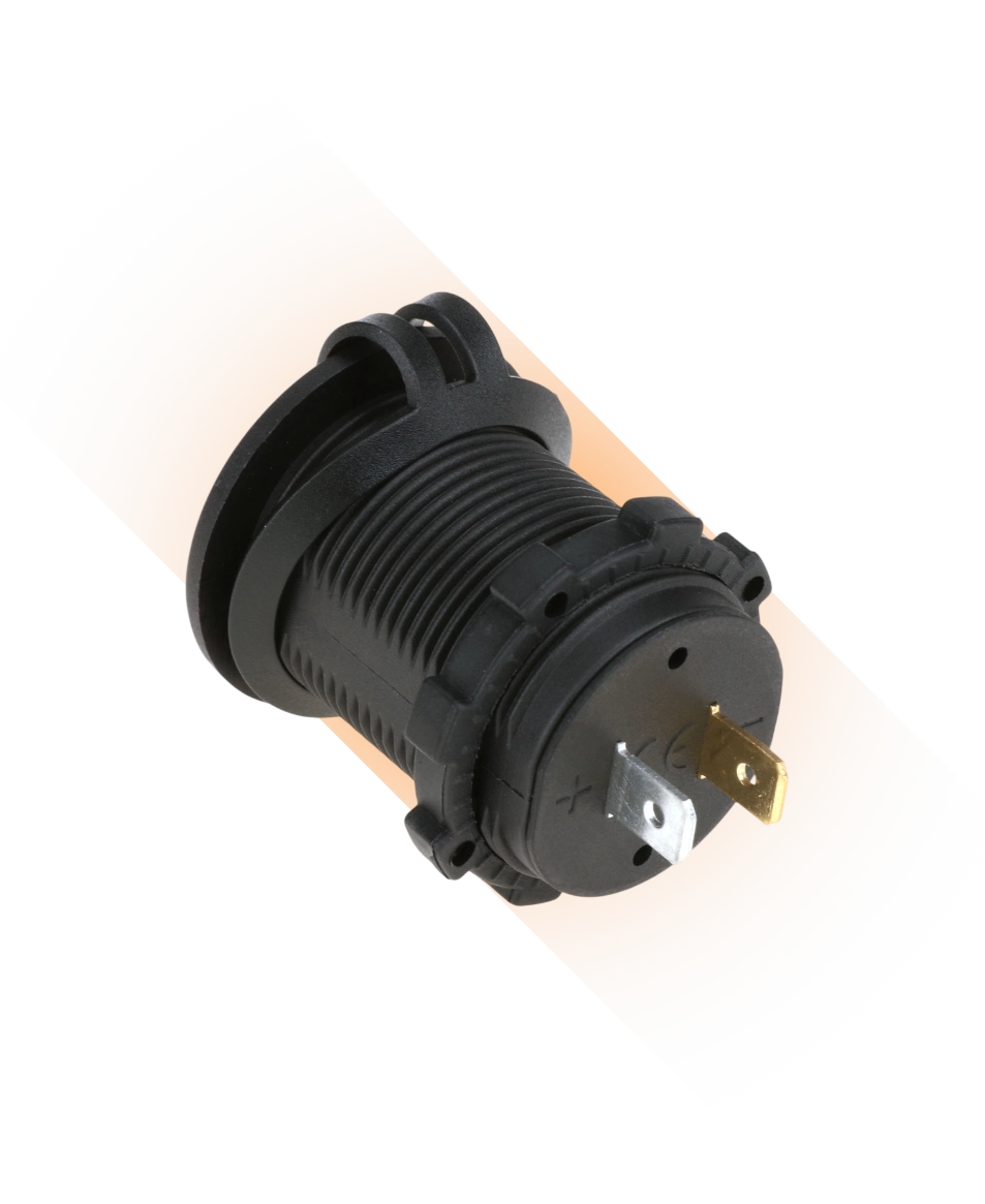 Kompaktowa, wodoodporna ładowarka z woltomierzem LED oraz dwoma portami USB. Dedykowana do pojazdów samochodowych, łodzi, ATV, UTV, RV i instalacji morskich, umożliwiająca szybkie ładowanie dwóch urządzeń jednocześnie (np. smartfonów, tabletów czy GPS).