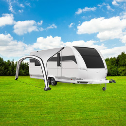 Zadaszenie przeciwsłoneczne Kari można przymocować bezpośrednio do przyczepy kempingowej za pomocą listwy kedrowej. Dzięki głębokości 250 cm i szerokości 400 cm, zadaszenie zapewnia rozległą ochronę przed słońcem i deszczem. Dzięki technologii AAS z rurami powietrznymi, zadaszenie jest nie tylko szybkie i łatwe w montażu, ale oferuje również wiele opcji personalizacji.