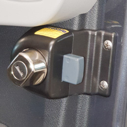 Zabezpieczenia antykradzieżowe HEOSolution do drzwi kabiny kierowcy Ford Transit Gen. 6 – solidne odlewane aluminium z zamykanym pokrętłem obrotowym. Dyskretne, bardzo wytrzymałe, łatwe w montażu na ramie drzwi, klamce lub podłokietniku; blokada w pozycji otwartej lub zamkniętej. Zestaw 2 szt. z 3-letnią gwarancją.