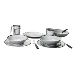 Specjalna faktura powierzchni i elegancki design sprawiają, że zastawa stołowa Tivoli jest wyjątkowa. Zestaw zastawy ma antypoślizgową spodnią stronę. Kubki są wykonane z Resylin.