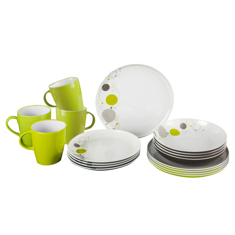 Zestaw naczyń stołowych Brunner Pralin (16 szt.) z wytrzymałej melaminy idealnie sprawdzi się w kamperze – lekki (3 kg netto) i odporny na warunki kempingowe. W skład wchodzą 4 talerze obiadowe ø25 cm, 4 do zupy ø21 cm, 4 deserowe ø20 cm oraz 4 kubki 0,3 l w bieli z ciemnoszarym akcentem. Kompletny i praktyczny wybór dla miłośników pleneru!