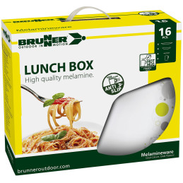 Zestaw naczyń stołowych 16-elementowych z melaminy marki Brunner zachwyca kolorowym, ponadczasowym designem i antypoślizgową powierzchnią spodnią. Idealny na kemping – lekki (netto 3,94 kg), trwały i łatwy w przechowywaniu (wymiary pakunku 45x30,5x13 cm). Kompletny Lunch Box Dolomit zapewni wygodne posiłki w plenerze!