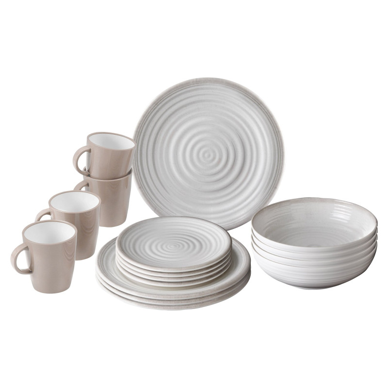 Zestaw naczyń stołowych Brunner Pralin (16 szt.) z wytrzymałej melaminy idealnie sprawdzi się w kamperze – lekki (3 kg netto) i odporny na warunki kempingowe. W skład wchodzą 4 talerze obiadowe ø25 cm, 4 do zupy ø21 cm, 4 deserowe ø20 cm oraz 4 kubki 0,3 l w bieli z ciemnoszarym akcentem. Kompletny i praktyczny wybór dla miłośników pleneru!