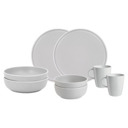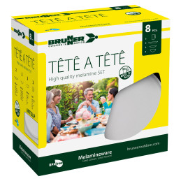 Zestaw naczyń stołowych Odette od Brunner, wykonany z wysokiej jakości melaminy Stonetouch z efektem porcelany, wyposażony w antypoślizgowe pierścienie. 16 elementów jest odpornych na uderzenia, sztaplowalnych, bezpiecznych w zmywarce i wolnych od BPA – idealny do kempingu. Kompaktowy i trwały wybór na każdą wyprawę.